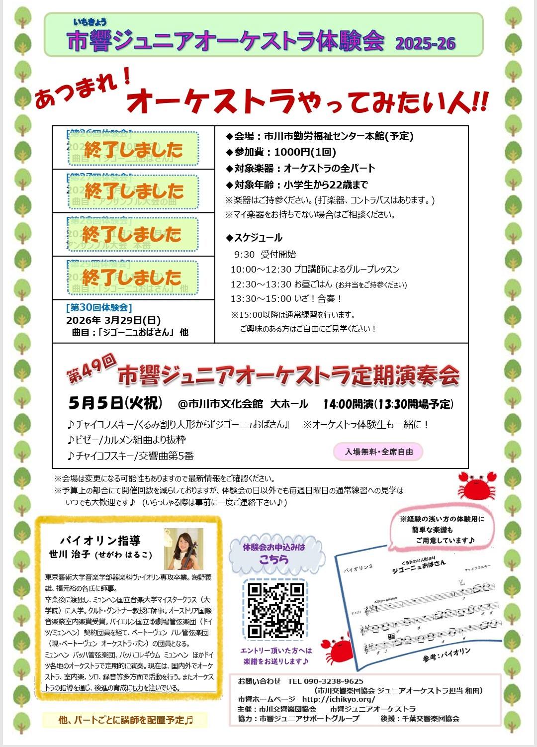 現在市響では、ヴァイオリン、ヴィオラ、チェロ、コントラバスでオーケストラ団員を募集しております。 また、他のパートにつきましても各パートリーダーと相談の上、ご返信をさせていただきます。 ぜひこれを機会に市響メンバーになりませんか。詳細はこちらをごらん下さい。 また、「入場無料」で行っている市響の演奏会をサポートする「維持会員」も随時募集しております。 こちらをご覧下さい。